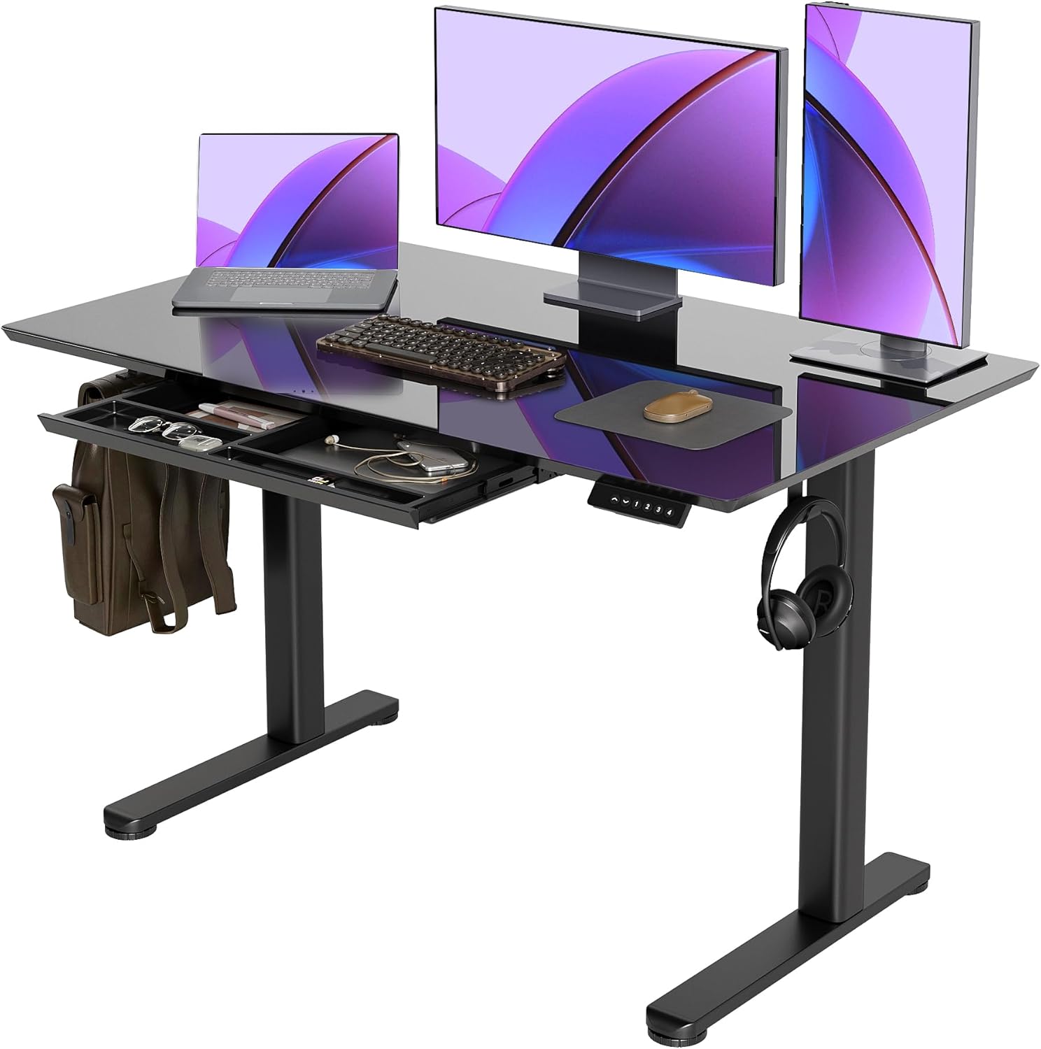 • Simple Assembly: Assembling our glass standing desk is a breeze. Just attach the legs to the top, and plug in the power cord; if you have any problems during the use or installation of the adjustable standing desk, please get in touch with us
