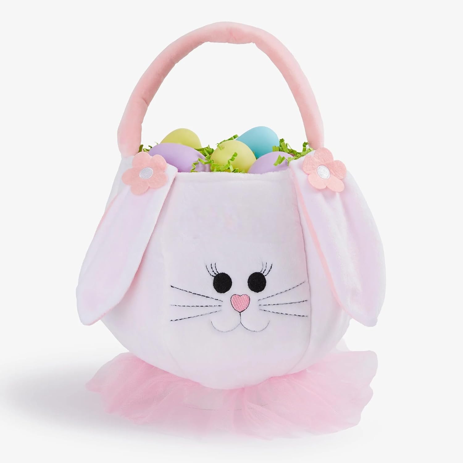 Make your little one's Easter extra special with our Easter Bunny Basket from Personalization Universe. These adorable baskets are perfect for all the Easter egg hunting fun. It features an adorable face detail and soft, floppy ears, along with a cute white cottontail. This baby basket is not just a treat bag, it's a keepsake that your baby will cherish for years to come. It's also available in grey and pink/white. The quality construction of this bag is impressive. Made from 100% polyester, each panel is filled with polyester batting, ensuring it can handle both small and larger loads. The contrast handle and inside lining add a charming touch, while the reinforced handles at stress points ensure it can handle your child's heavy collection year after year. To keep it looking its best, simply spot clean as needed. This is a perfect Easter basket stuffer for your toddler or baby. Our Easter Bunny Basket is more than just an Easter basket, it's a cherished Easter tradition waiting to happen. Make this Easter unforgettable with our Personalized Easter Bunny Basket. CONTENTS NOT INCLUDED.