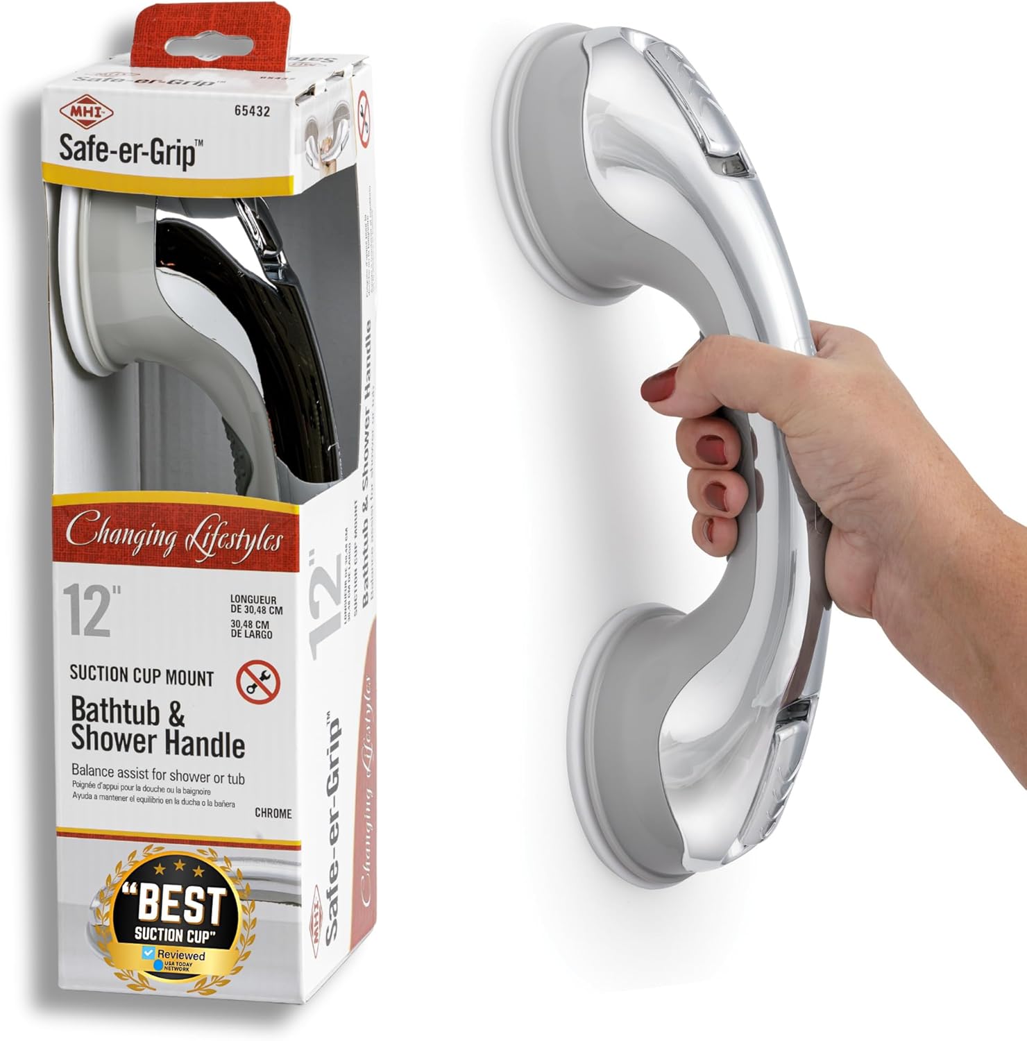 Product Description Safe-er-Grip Swivel Balance Assist Bar, Suction Cup Bathroom Safety Bar, Easy No Tool Installation, 28 inches, White and Grey From the Manufacturer Get a handle on bathroom safety with this adjustable bathtub and shower handle. The Swivel Safe-er-Grip Balance Assist Bar for tub and shower from MHI allows you to enter a wet and slippery tub or shower safely and with confidence. The Safe-er-Grip Swivel assists your balance while entering or exiting the tub or shower - full body weight is not to be applied to product*. This easy to install grip gives both parent and child steady confidence in and around the tub. NOTE: The surface must be smooth and non-porous such as, glazed ceramic tiles, plastic or glass. ; this surface MUST be smooth and flat .Tile must be at least 4” x 4”. This information is provided in the attached manual and included with the item purchase. *If device is required to bear full body weight, or is used for leverage, it is recommended that a traditional permanently mounted grab bar be installed.• Product does NOT suction to drywall • Do not place over grout lines as this allows air to move under the suction cup thereby releasing its hold. Always test to confirm suction is tight before each use P.when('A').execute(function(A) { A.on('a:expander:toggle_description:toggle:collapse', function(data) { window.scroll(0, data.expander.$expander[0].offsetTop-100); }); }); Manufacturer Contact Information Mommy’s Helper Customer Service; 800-371-3509; service@mommyshelperinc.com See more