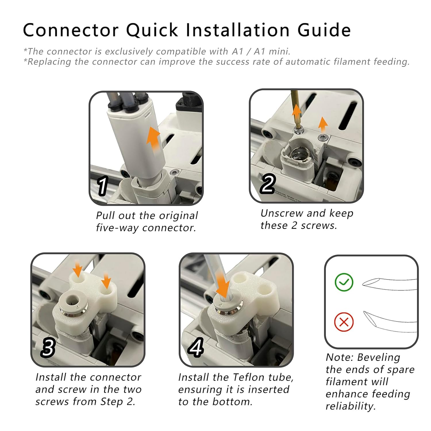 Specification: Item Type: 3D Printer Filament Buffer Compatible Materials: PLA, ABS, PETG, PA Design Purpose: Designed for remote feeding to ensure stable printing, low-resilience feeding, improved accuracy, and reduced extruder load Package List: 1 x 3D Printing Filament Buffer 1 x USB Cable 1 x Cable Tie 1 x PTFE Tube 1 x A1/A1 MINI Connector 1 x Connector Installation Guide 1 x User Manual or 1 x 3D Printing Filament Buffer 1 x USB Cable 1 x Cable Tie 1 x PTFE Tube 1 x User Manual 1. Remote Feeding Design: This filament buffer is engineered for remote feeding systems, ensuring stable and low-friction material feed during printing, which enhances accuracy while reducing extruder workload. 2. Automatic Pre-Feeding: The auto filament feeder proactively advances filament toward the hot end, maintaining consistent pushing force while reducing pulling tension on the material for more stable print quality. 3. Seamless Spool Transition: When the primary spool runs out, the backup spool refill system automatically engages based on preset timing, allowing uninterrupted printing - ideal for long or unattended print jobs. 4. Universal Compatibility: This filament refill system works with various 3D printer and supports multiple materials including PLA, ABS, PETG, and PA for versatile printing applications. 5. Reduced Extruder Load: The 3D printing machine filament buffer optimizes material tension management, effectively minimizing strain on your extruder mechanism while maintaining consistent filament delivery.